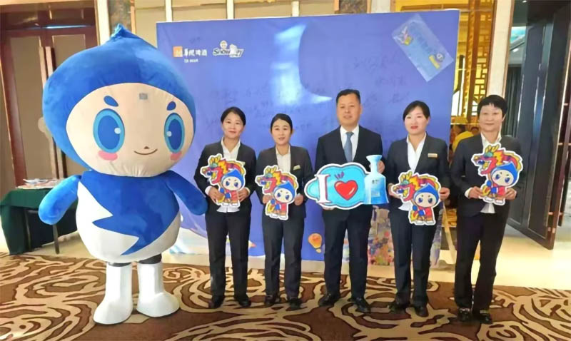 16日上午,進入公司首先映入眼簾的就是氛圍感滿滿的雪花日主題物料,“雪娃”早早的在門口迎接每位家人的到來;大家紛紛同雪娃合影留念,簽到領取雪花人專屬禮物——由“新世界啟航箱”、“無畏逐夢行囊”、“啤白共飲杯”、“舉杯徽章”組成的“舉杯禮盒”。同時,每位小伙伴還領取到了承載著經典回憶、象征駛向新世界的“雪花時光列車”甄選禮盒。