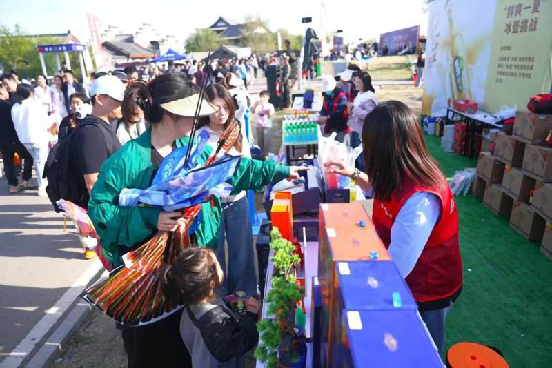 本屆風箏會上,2025“春游齊魯”服務消費季正式啟動,為更好拓展風箏會IP內涵,以酒為媒積極推動服務業發展新動能,景芝白酒于風箏公園及風箏王國展館專門設立了品牌體驗展示專區和多處產品售賣專區,展區內不僅有景芝有酒五千年文化歷史展示、大國芝香體驗品鑒,也有消費者現場集章打卡;售賣專區“武松打虎”、“百發百中”、套圈互動、掃碼有獎等活動頻頻、售賣火熱,引得眾多游客現場爭相參與互動、品鑒購買景芝產品,游客購買到心儀的景芝美酒的同時,紛紛點贊景芝以實際行動為濰坊國際風箏會帶來了更好的服務供給和美好體驗。
